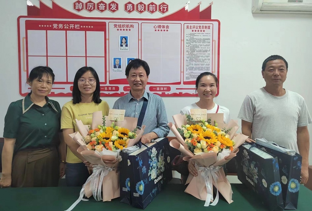 營業(yè)中心班子各自回顧起與兩位退休職工一起工作的美好時光,大家暢所欲言,暖心的話語,觸動著彼此,期盼退休后繼續(xù)關心、幫助、支持公交事業(yè)的發(fā)展,?!盎丶摇笨纯?。隨后為姚開忠、胡玲玲獻上鮮花并合影留念。