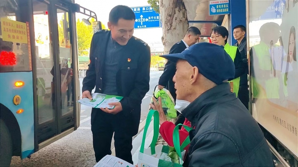 “大爺,注意安全,我扶您上車(chē)”“奶奶,我?guī)湍惆研欣钐嵘先ァ薄澳?qǐng)坐穩(wěn)扶好”,簡(jiǎn)簡(jiǎn)單單一聲問(wèn)候、一個(gè)動(dòng)作,向老人們傳遞濃濃關(guān)愛(ài)和溫情,志愿者的行動(dòng)也獲得市民點(diǎn)贊。