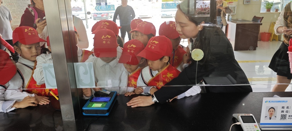 圖/在公交營業(yè)廳,工作人員為同學(xué)們介紹了公交IC卡種類以及“學(xué)生卡”辦理流程,通過實物演示的方式與同學(xué)們互動問答。