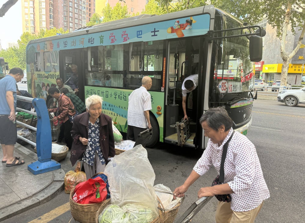 6時(shí)30分,石大娘趕到85路公交車始發(fā)站,她并不是最早一個(gè),許多鄉(xiāng)親也正等待著“菜籃子”專車到來(lái)。