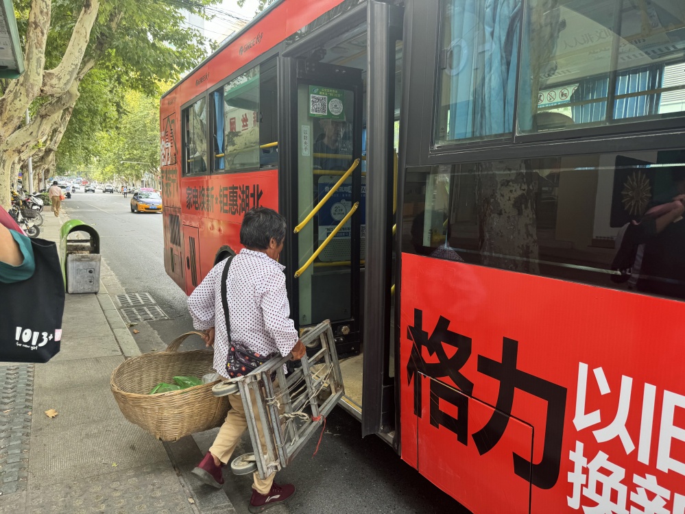 6時(shí)50分,公交車準(zhǔn)時(shí)到達(dá),駕駛員余平熱情幫助村民乘車。