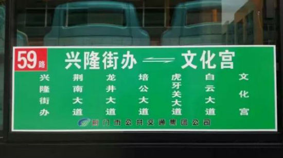 59路起于興隆街辦,止于荊門工人文化宮,全線共行駛興隆街辦、荊南大道、龍井大道、培公大道、虎牙關(guān)大道、白云大道、文化宮等主要線、點(diǎn),覆蓋高新區(qū)東片區(qū)的國昊文化、華工科技等主要企業(yè),連接九派通眾創(chuàng)園、區(qū)政府、十里牌、天鵝湖、中心客運(yùn)站等。早班為6:36分發(fā)班,晚上18點(diǎn)收班。計(jì)劃投入公交車20輛,首批投入6輛試運(yùn)行。至1月20日后正式運(yùn)行。