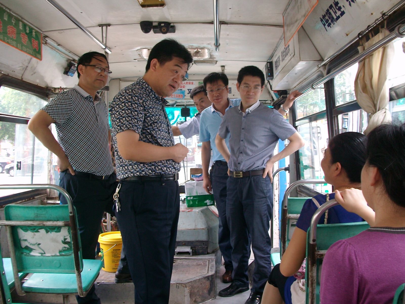 當(dāng)日中午12時,正值高溫時刻,伍應(yīng)彪等領(lǐng)導(dǎo)冒著炎炎夏日來到海慧車站,看望慰問高溫下堅守工作崗位的公交職工。在16路、21路、22路線正待發(fā)班的公交車前,伍應(yīng)彪上車與一線駕駛員親切握手,詢問了解駕駛員們的身體和工作情況,并聽取了一公司負(fù)責(zé)人對改善職工們的工作和休息環(huán)境等工作匯報。在與駕駛員們親切交談中,伍應(yīng)彪親自為駕駛員們送上了礦泉水、毛巾、人丹、清涼油等防暑降溫用品。同時,他還向部分乘客征求了改善乘車環(huán)境的意見和建議。