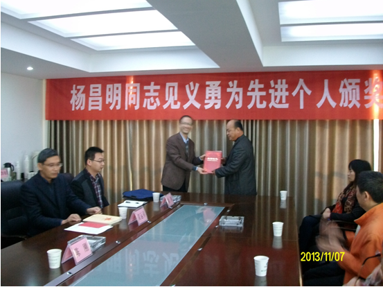 楊昌明,52歲,退伍軍人,也是荊門公交集團一公司39路駕駛員。10月6日下午,楊昌明駕駛鄂H9337公交汽車,行駛至荊門火車站附近,車上一位帶孩子的婦女說錢包被人偷了。車上乘客反映,錢包是婦女正要上車時被小偷偷的,前面跑的那個人就是小偷。楊昌明聽到后,迅速關上車門,踩下油門,追向小偷。在追上小偷后,楊昌明便打開車門跳下車向小偷猛追過去。小偷見楊昌明窮追不舍,只好扔下錢包跑進一條小巷子。本著安全接送乘客,楊昌明撿起錢包后回到車上,并當著乘客的面清點了錢包。錢包內裝有現(xiàn)金6200元、多張存折(共58000元)、身份證等。隨后,經公交公司報案,錢包由民警交還失主。市見義勇為促進會及東寶區(qū)社會管理綜合治理委員會表示,楊昌明見義勇為、弘揚正氣的事跡經包括本報在內的媒體宣傳報道后,受到社會各界廣泛好評和群眾的一致稱贊。經研究決定,授予楊昌明見義勇為先進個人稱號,并分別獎勵1000元、500元人民幣。