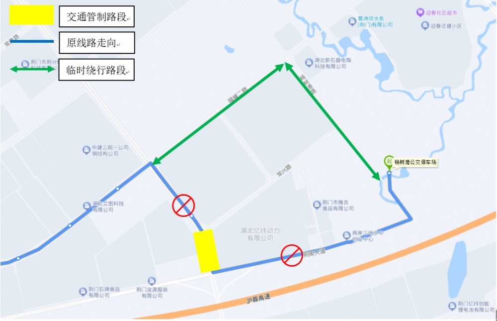調整線路走向:原荊南大道—楊樹港路—常興路—龍井大道段調整為荊南大道—楊樹港路—福耀二路(東段)—龍井大道