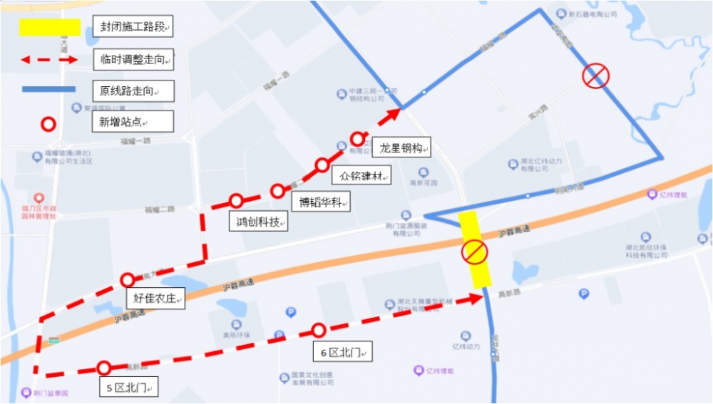 因掇刀區(qū)龍井大道(高新路至荊南大道)路段將進行全封閉施工,為確保市民正常安全通行,市交通運輸局決定將途經(jīng)封閉施工路段的35路、59路兩條公交線路走向進行臨時性調(diào)整。調(diào)整方案如下: